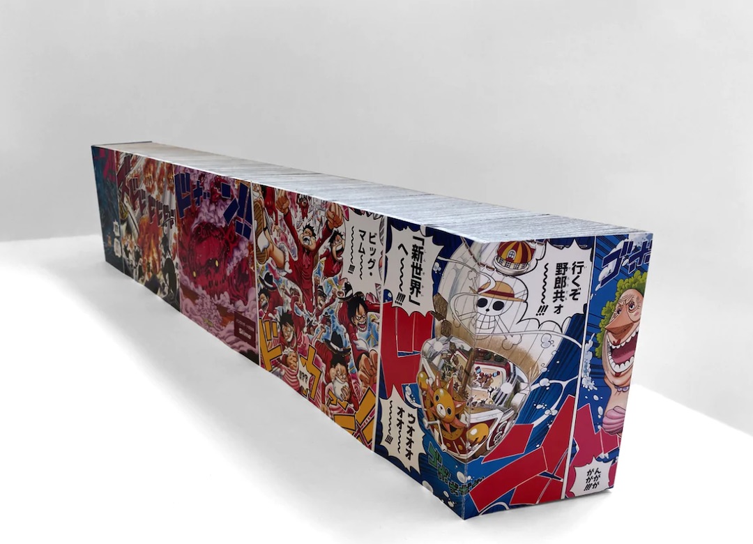 Artist Ilan Manouach, in collaboration with JBE Books, has taken to compiling 25 years’ worth of the One Piece saga into a single book, aptly titled ONEPIECE. And a series that has been going on for that long with weekly updates in the Shonen Jump magazine has led to one massive manga that would probably take up a whole bookshelf.